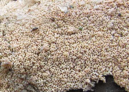 Aderig Wasvlies of Ceraceomyces crispatus op loofhout, soms op naaldhout, in verschillende bostypen, vooral in moerasbossen. Vindplaats: maart 2010 korstzwammen