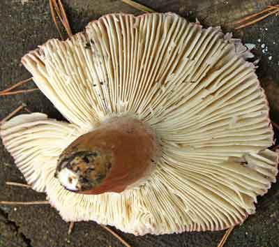 Appelrussula of Russula paludosa, bij den, spar en larix in oude bossen op zowel droge als vochtige voedselarme bodem. vindplaats: Lieren, Albaweg september 2011 plaatjeszwammen