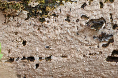 Barstend Harskorstje of Hyphoderma setigerum, op loofhout, soms op naaldhout. Vindplaats: november 2011 korstzwammen