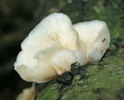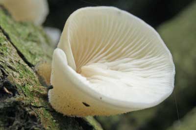 Bleke Harpoenzwam of Hohenbuehelia mastrucata, op stammen van oude loofbomen en -struiken. vindplaats: Leuvenheim, september 2013 plaatjeszwammen