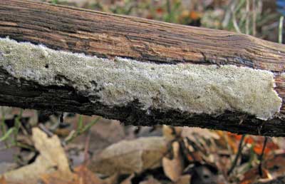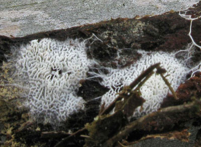 Bosnetje of Ceriporia reticulata aan de onderkant van sterk vermolmde takken van allerlei soorten loofhout, het meest in vochtige bossen .
