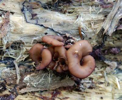 Bruine anijszwam of Lentinellus cochleatus, op loofhout, meestal van beuk, soms ook eik.