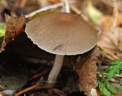 Conische franjehoed of Psathyrella tephrophylla, op de grond, soms op houtsnippers, in loof- en gemengde bossen.