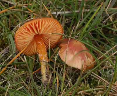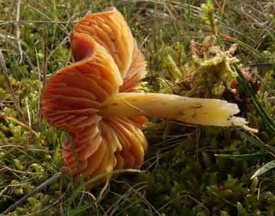 Duinwasplaat of Hygrocybe conicoides, in de kustduinen op droge humusarme grond