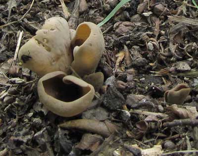 Echt Hazenoor of Otidea leporina, tussen strooisel, hoofdzakelijk onder den, ook onder loofbomen.
