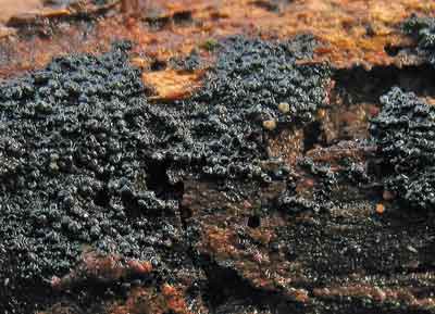 Essenpokzwammetje pf Nitschkia confertula, op dood loofhout op klei. Vindplaats: Gelderse toren, november 2017 ascomyceten