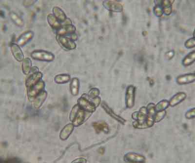Essenpokzwammetje pf Nitschkia confertula, op dood loofhout op klei.