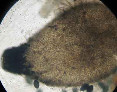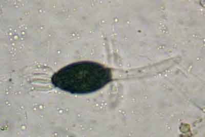 Podospora decipiens of flapsporig menhirzwammetje, op paardenmest.