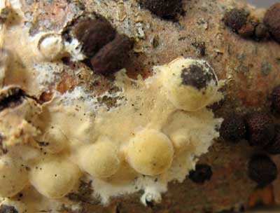 Peniophorella pubera - Fluwelig Harskorstje, op loofhout in diverse vegetaties.
