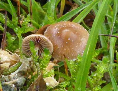 Franjekaalkopje - Deconica crobula, Saprotroof op dode takken in Loofbossen