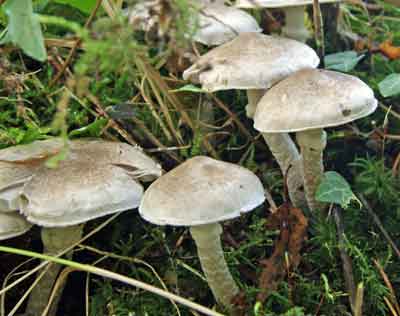 Geringde ridderzwam of Tricholoma cingulatum, mycorrhizasymbiont van wilg. Ook in wilgenstruwelen en -bossen op rivierklei.