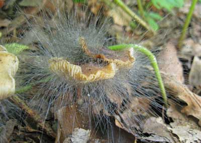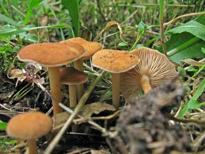 Gymnopus dryophilus - Gewoon eikenbladzwammetje, een veel voorkomende soort tussen bladeren. Op de tweede foto zit een parasiet, een knopschimmel.
