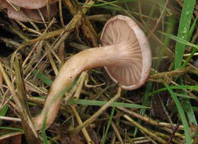 Giftige Weidetrechterzwam of Clitocybe rivulosa, tussen mos en gras in voedselarme tot -rijke graslanden, ook in open loof- en naaldbos. Vindplaats: Laakse Strand november 2009 plaatjeszwammen