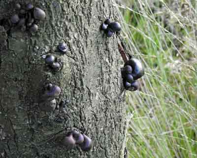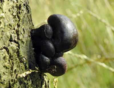 Glanzende Houtskoolzwam of Daldinia vernicosa, saprotroof op verbrand hout van brem, berk of eik. Vindplaats: Gorsselse hei, brandplek september 2012 Park de Hoge Veluwe, augustus 2016 ascomyceten