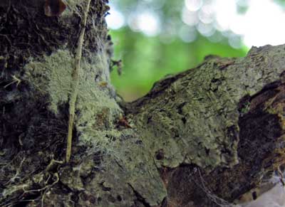 Groezelig Huidje of Phanerochaete sordida, op takken van loofbomen.