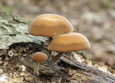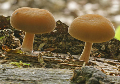 Groot matkopje (f. tetraspora) of Simocybe sumptuosa f. tetraspora, op dood hout van loofbomen.