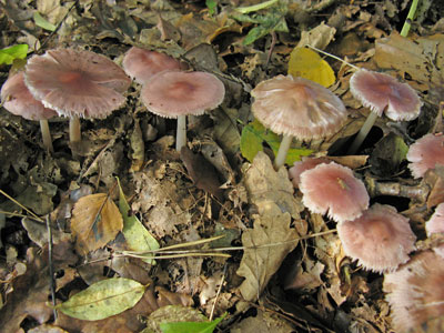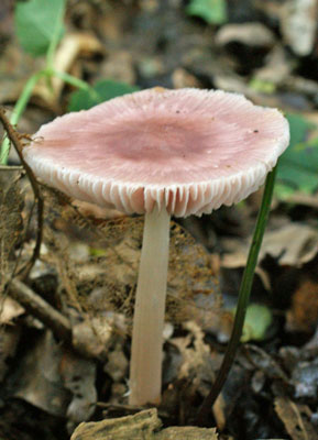 Heksenschermpje of Mycena rosea, tussen bladstrooisel in loofbos en gemengd bos. vindplaats: september 2007 plaatjeszwammen