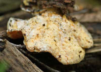Hypocrea pallida. De oranje schimmel wat op een kaaszwam groeit is de padddestoel. Het was onbekend waar dit te zoeken tot deze soort in oktober 2008 op deze naam gebracht werd. Vindplaats: Apeldoorn, Zr. Meyboomlaan november 2007 ascomyceten