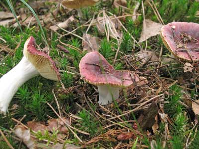 Jodoformrussula of Russula turci, met den, in naaldbossen op zowel vochtige als droge, kalkhoudende of lemige zandbodem. vindplaats: Lieren, Albaweg oktober 2009 plaatjeszwammen