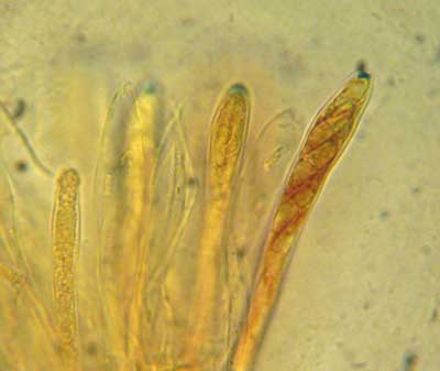 Kernzwamknopje of Polydesmia pruinosa, loofhouttakken en twijgen op oude paddestoelen.