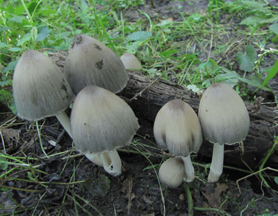 Kleine Kale Inktzwam of Coprinus acuminatus, komt voor op houtsnippers of dikke takken op de grond, aan boomstronken.
