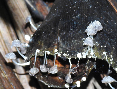 Kleinsporige halminktzwam of Coprinus phaeosporus, op kruidachtige plantendelen bij vuilnisbelt, ruigtevegetatie. vindplaats: Arnhem, Burgers Zoo juni 2018 plaatjeszwammen