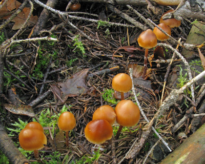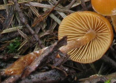 Kleverig Mosklokje of Galerina stylifera, op takken, twijgjes en ruw strooisel, meestal van den, ook van andere naaldbomen, soms van loofbomen, voornamelijk in naald- en gemengde bossen en jeneverbes-struwelen, soms in loofbos.