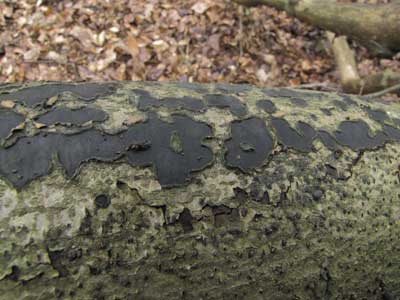 Korstvormig schorsschijfje of Diatrype stigma, op afgevallen takken, soms op stammen van loofbomen, veel op beuk, maar ook op esdoorn, berk, meidoorn e.a., in loofbossen, parken, houtsingels. Vindplaats: Brummen, 't Leusveld februari 2008 ascomyceten