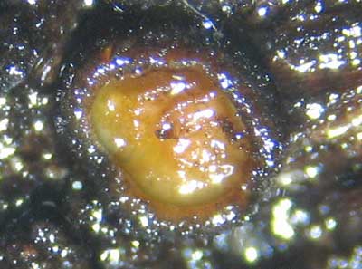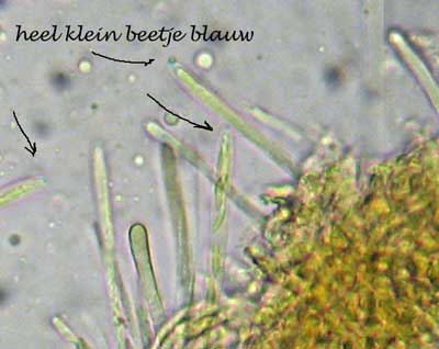 Lachnellula flavovirens, op stronk.