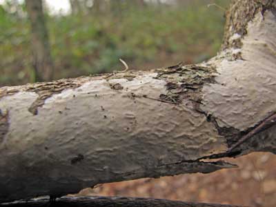 Radulomyces hiemalis - Mammoetboomkorst, op naaldhout in naaldbos.