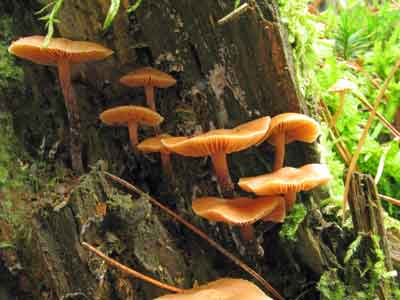 Naaldbosmosklokje of Galerina sideroides, op naaldbomen en struiken.