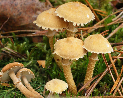 Okergele korrelhoed of Cystoderma amianthinum op humusrijke grond, soms op ruw strooisel, vaak tussen mossen, vooral in loofbossen, schrale graslanden,