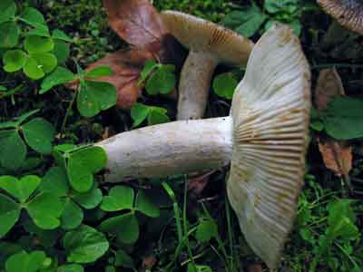 Onsmakelijke kamrussula of Russula pectinatoides, bij loofbomen, voornamelijk met eik.