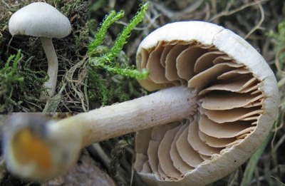 Oranjebloesemzwam of Hebeloma sacchariolens. Ectomycorrhiza vormend met loofbomen, zoals van els, beuk, eik en wilg in loofbossen, en lanen.