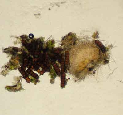 Papilbraamroest of Phragmidium bulbosum, dit zijn de teleosporen van deze soort en deze komt voor op braam.