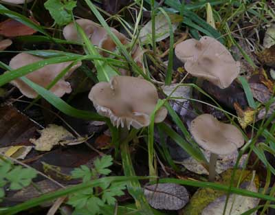 Ranzige elzensatijnzwam - Entoloma caccabus, samen met Els in elzenbroekbos of veen.