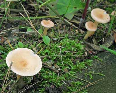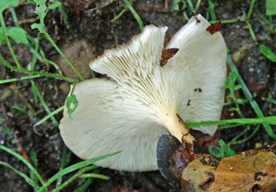 Slanke Trechterzwam of Clitocybe gibba tussen bladeren en naalden op voedselarme zand of leem. Vindplaats: augustus 2007 plaatjeszwammen