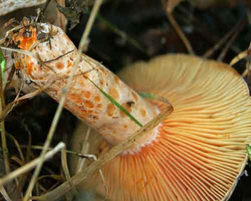 Smakelijke melkzwam of Lactarius deliciosus, ectomycorrhiza vormend met den in naald- en gemengde bossen. vindplaats: Lieren, Albaweg augustus 2009 plaatjeszwammen