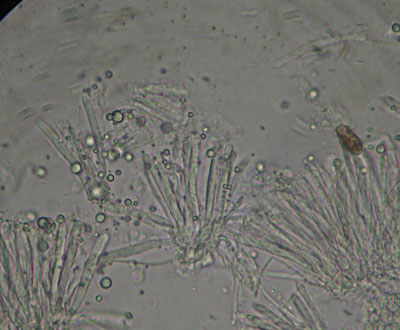 Sombere mollisia of Mollisia caespiticia, op takken van dood wilgenhout