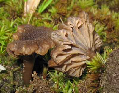Somber trechtertje of Omphalina obscurata, tussen mos in voedselarm tot matig voedselrijk droog zand.
