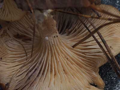 Stinkende trechterzwam - Clitocybe foetens, op strooisel van loofbomen en struiken. Vindplaats september 2020, Doonweg Eerbeek plaatjeszwammen