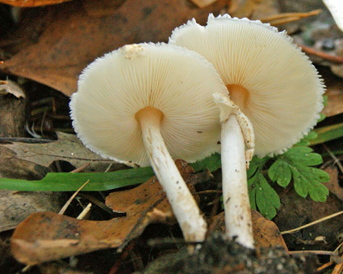 Stinkparasolzwam of Lepiota cristata, op voedselrijke bodems, in loof- en naaldbossen.
