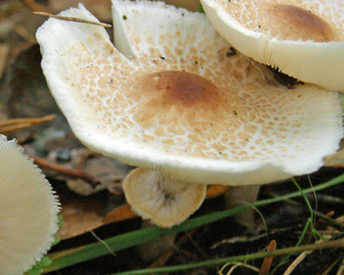Stinkparasolzwam of Lepiota cristata, op voedselrijke bodems, in loof- en naaldbossen. vindplaats: Brummen, Engelenburg juli 2007 plaatjeszwammen