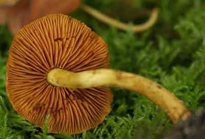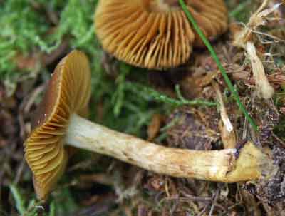 Cortinarius croceoconus - Valse geelplaatgordijnzwam. Ectomycorrhiza vormend met loof- en naaldbomen, hoofdzakelijk den en eik in bossen op voedsel- en humusarm zand, ook bij kruipwilg in (duin)graslanden.