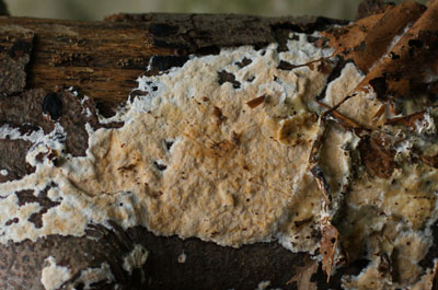 Verkleurende Poria of Ceriporiopsis gilvescens, op allerlei loofboomsoorten met voorkeur voor beuk.
