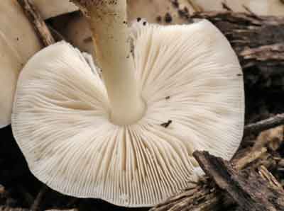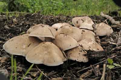 Zaagselhertenzwam of Pluteus petasatus, op zaagsel of sterk vergane stronken, soms op liggende takken of stammen van loofbomen.