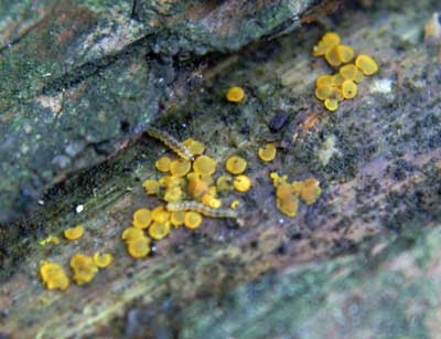 Doorzichtig Wasbekertje of Orbilia sarraziniana, op dood loofhout. vindplaats: augustus 2007 ascomyceten