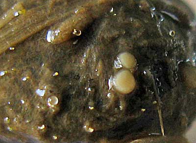 Geelwit mestdwergschijfje of Coprotus dextrinoideus op mest van de Walibi in het hertenkamp.