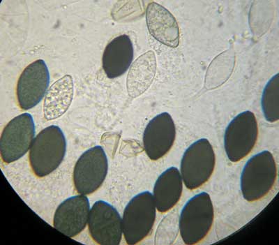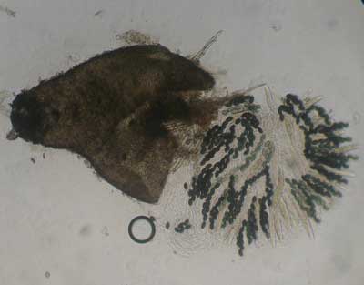 Grootsporig menhirzwammetje of Schizothecium glutinans, op mest van in het wild grazende geiten.