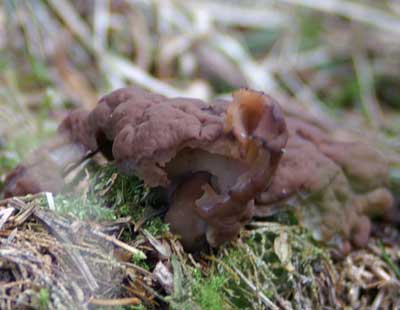 Grote Voorjaarsbekerzwam of Discina ancilis, vermoedelijk saprotroof, in naaldbos. In Rode Lijst als potentieel bedreigd wegens uiterst zeldzame voorkomen. Vindplaats: Flevopolder, Roggebotzand april 2008 ascomyceten